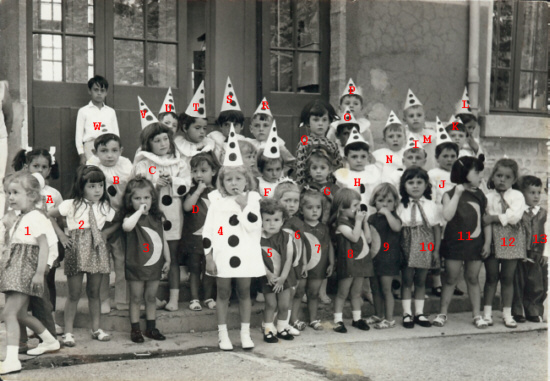 A ?, B ?, C ?, D BOCK Cathy, E ?(derriere le 4), F ?, G ?, H ?, I ?, J ?, K ?, L ?, M ?, N ?, O ?, P ?, Q ?, R ?, S ?, T ?, U ?, V ?, W ROBERT Joèl